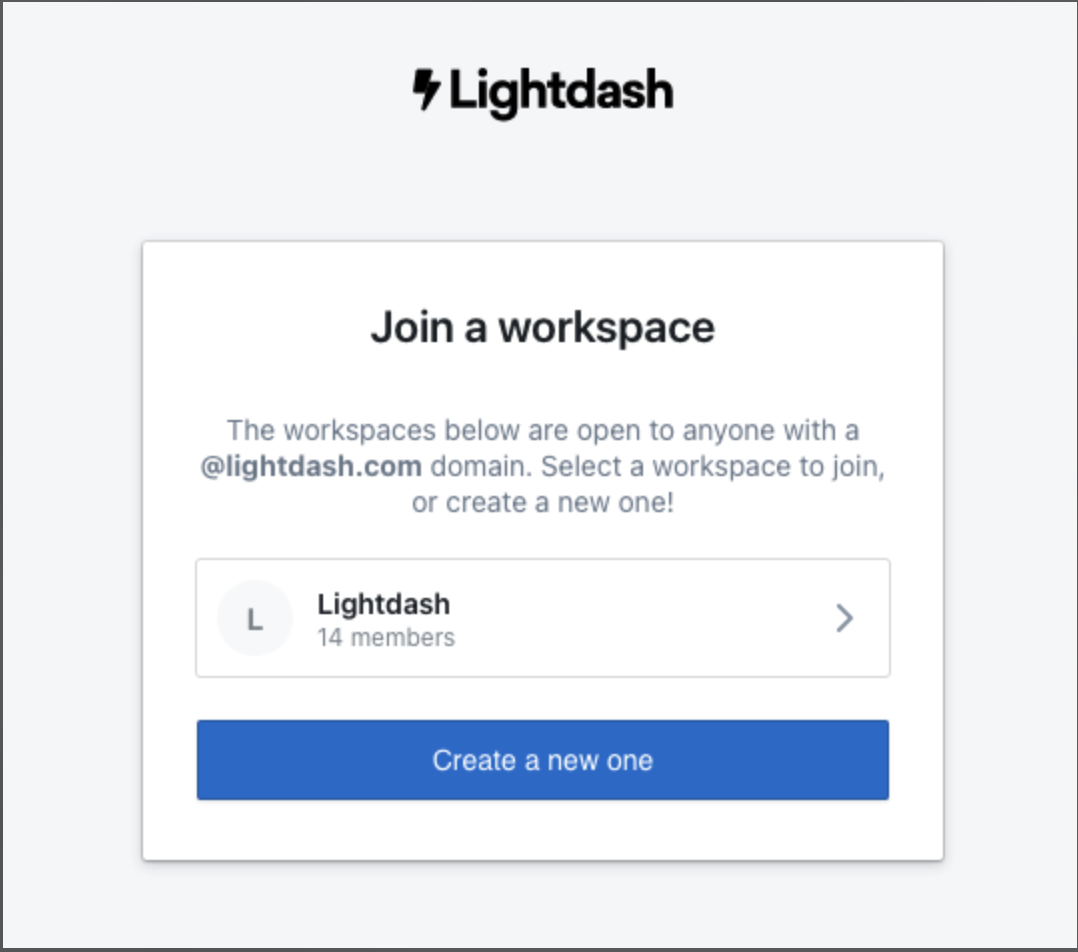 Now, when a user tries to join Lightdash, they will be prompted to join your workspace if they have one of your allowed email domains.