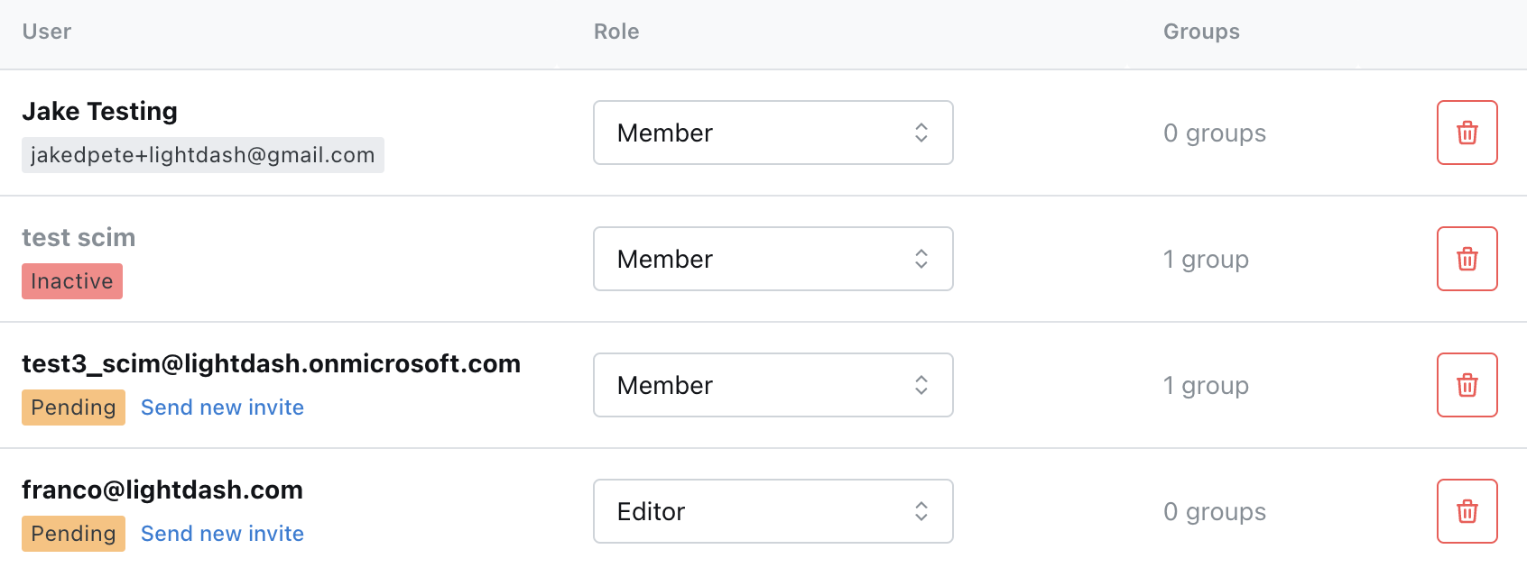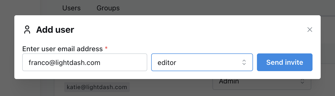 You then need to input the email address of the user you want to invite and select the role you want to assign them. Read more about user roles and permissions in Lightdash here. Once you hit Send invite, we’ll send an email to the new user with their invite link.