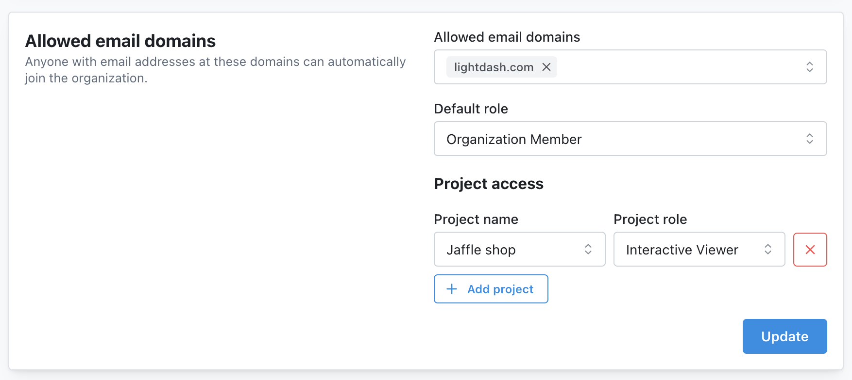 Once you’ve selected the default roles for your allowed email domains, make sure to click Update to save your changes.